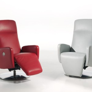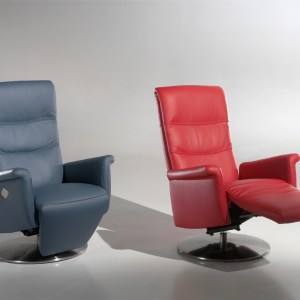 RelaxGamme de fauteuils relax modernes avec pied pivotant. Disponible en tissu, simili ou cuir. Grand choix de coloris. -