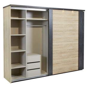 ChambresChambre contemporaine avec armoire coulissante, disponible dans 2 dimensions de garde-robes et 3 dimensions de lit Eclairage lit fournis avec le mobilier.... -