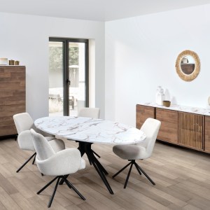 Salles à mangerMobilier contemporain en imitation Teak & Marbre ou tout imitation Teak. -